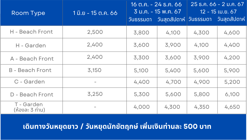 (พักอย่างน้อยห้องละ 2 ท่าน)